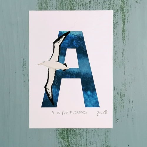 Previous Product Next Product A is for Albatross A5 Print £10.00 Only 1 left in stock A is for Albatross A5 Print quantity Add to basket SKU: SF0102AA Category: Artwork Tags: alphabet, art, children, Letter A, nursery, nursery decor, print Additional information Reviews (0) Additional information Weight 0.25 kg Dimensions 21 × 0.2 × 14.8 cm Reviews There are no reviews yet. Be the first to review “A is for Albatross A5 Print” Cancel replyYour email address will not be published. Required fields are marked *Your rating * Rate… Perfect Good Average Not that bad Very poor Your review *Name * Email * Save my name, email, and website in this browser for the next time I comment. Δ Related products Quick View Quick View ArtworkM is for Manta Ray A5 Print £10.00 Add to basket Quick View Quick View ArtworkV is for Viper A5 Print £10.00 Add to basket Quick View Quick View ArtworkK is for Koala A5 Print £10.00 Add to basket Quick View Quick View ArtworkBust of Athena Giclee Print £35.00 Add to basket