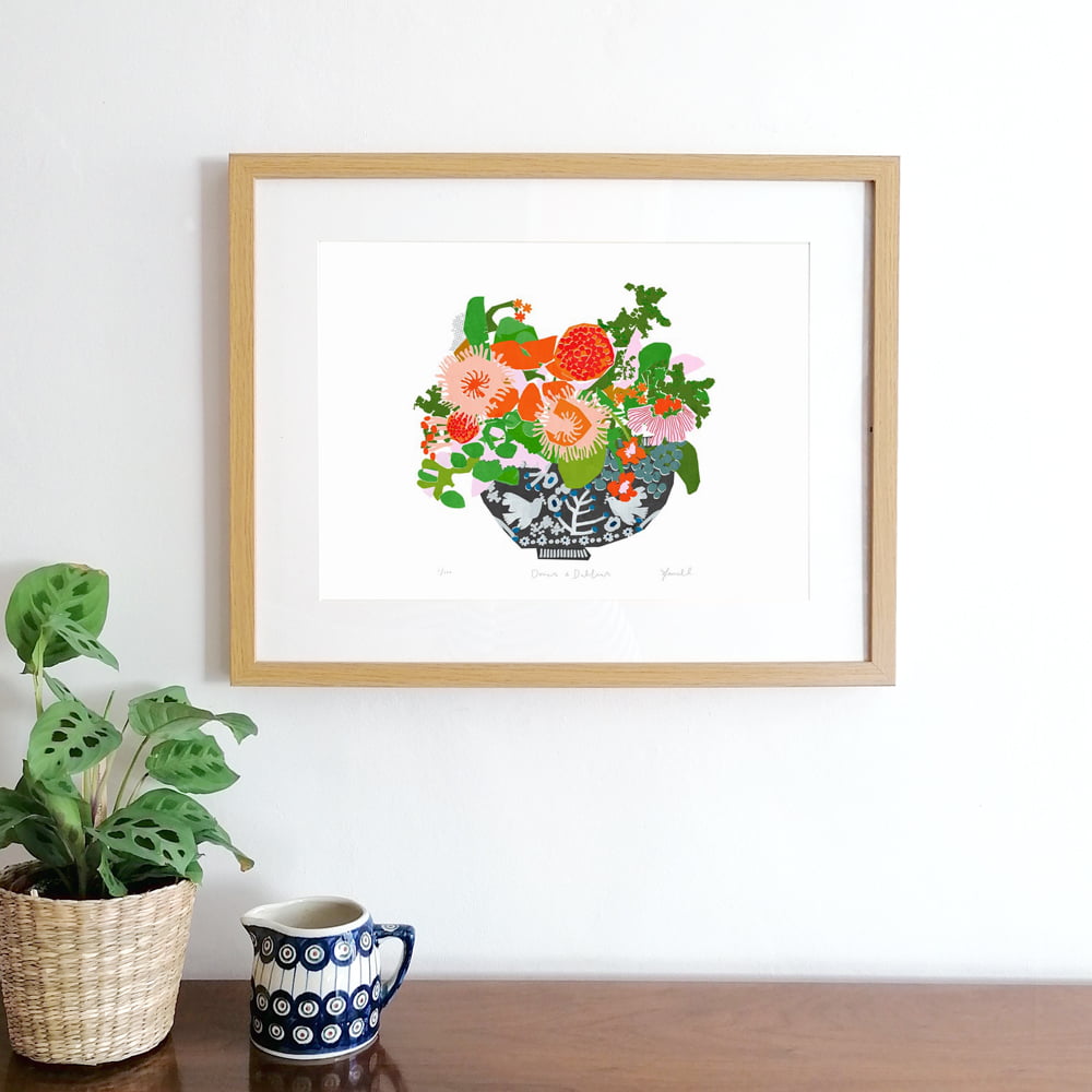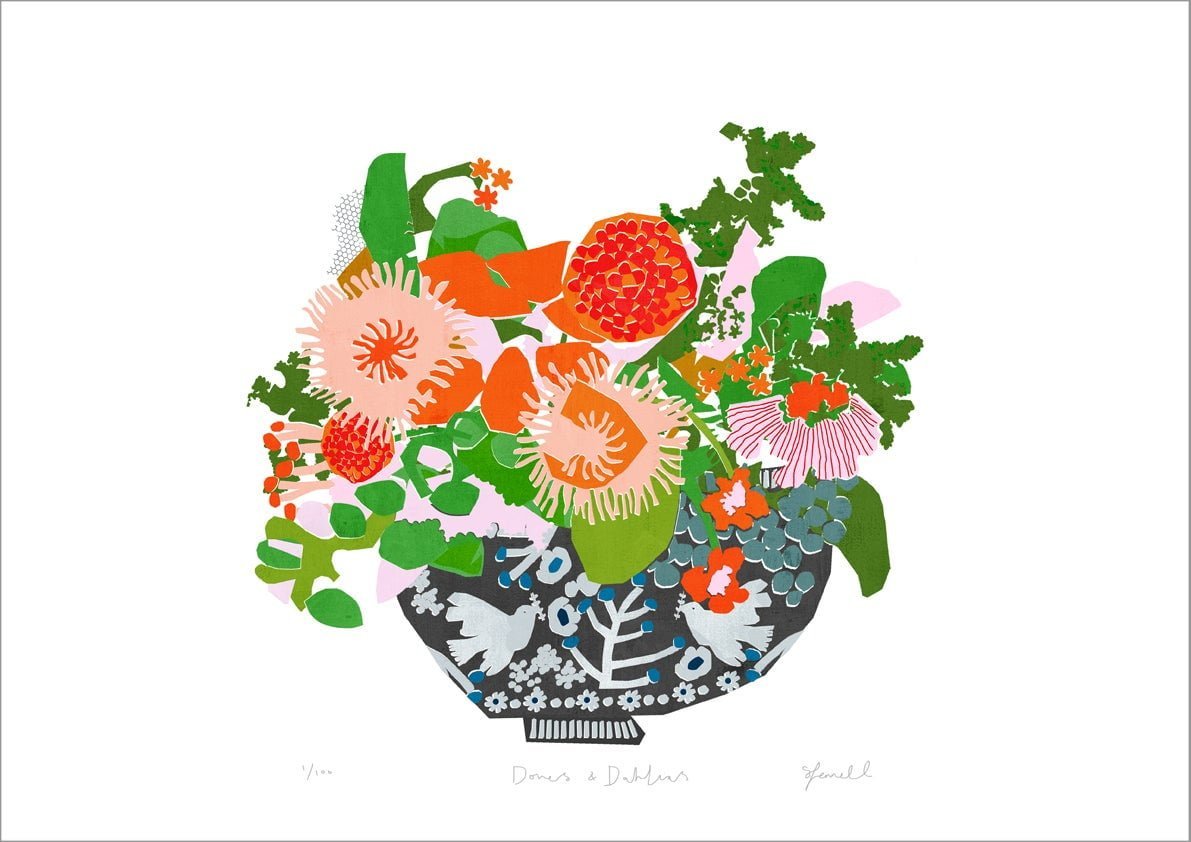 Doves & Dahlias Giclee Print