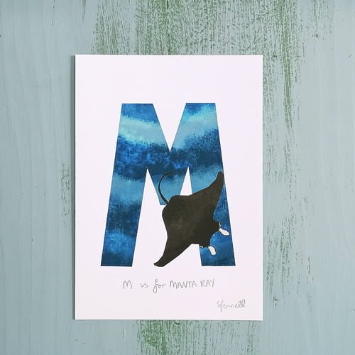 Previous Product Next Product M is for Manta Ray A5 Print £10.00 In stock M is for Manta Ray A5 Print quantity Add to basket SKU: SF0102AM Category: Artwork Tags: alphabet, art, children, Letter M, nursery, nursery decor, print, sea, Sealife Additional information Reviews (0) Additional information Weight 0.25 kg Dimensions 21 × 0.2 × 14.8 cm Reviews There are no reviews yet. Be the first to review “M is for Manta Ray A5 Print” Cancel replyYour email address will not be published. Required fields are marked *Your rating * Rate… Perfect Good Average Not that bad Very poor Your review *Name * Email * Save my name, email, and website in this browser for the next time I comment. Δ Related products Quick View Quick View ArtworkE is for Elephant A5 Print £10.00 Add to basket Quick View Quick View ArtworkR is for Rhino A5 Print £10.00 Add to basket Quick View Quick View ArtworkT is for Tiger A5 Print £10.00 Add to basket Quick View Quick View ArtworkG is for Giraffe A5 Print £10.00 Add to basket