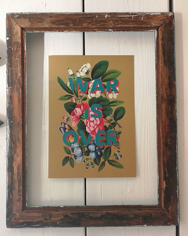 A quirky yet topical print featuring contemporary typography on a traditional botanical background.